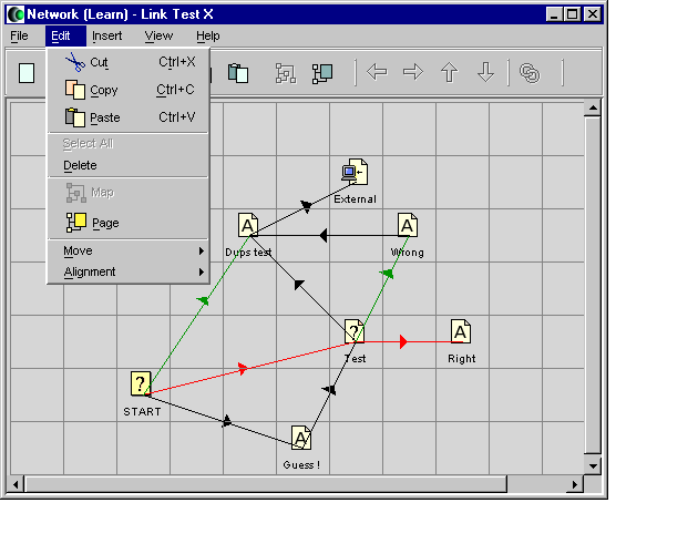 The term Learning-activity is a generic name used within Creator, for any type of activity that has associated with it, a set of milestones or goals. The other main difference between Creators Learning-activities and Reference-works, is that Learning-activities have a network of inter-relationships, graphically created during the authoring process, based on conditions. See Fig. 5 further down, which represents a screen-shot of the Page Linker (also sometimes called the Networker), the Creator Authoring Tool used to create Learning-activities.