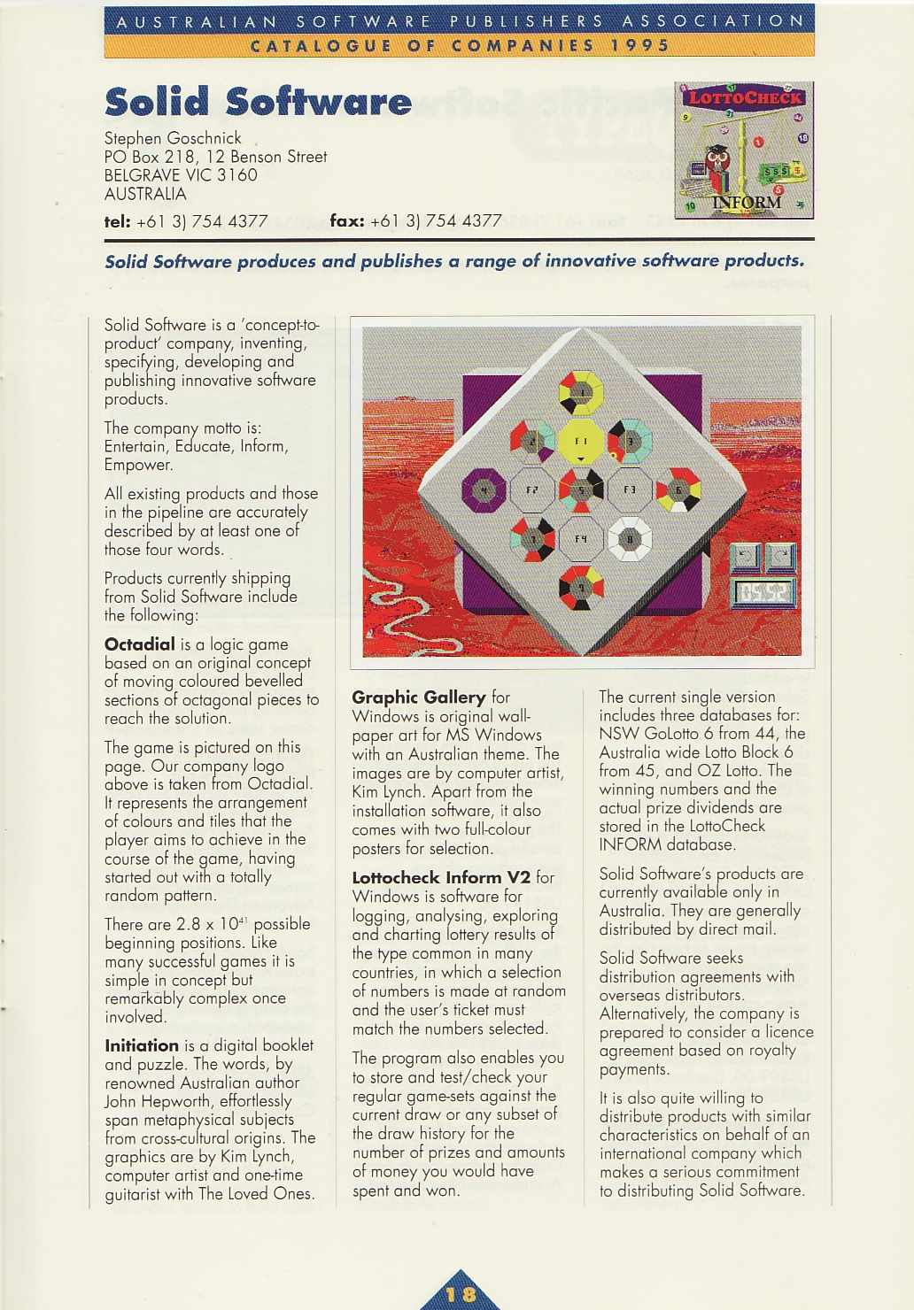 Site Map             Search             Policy             Education               Consultancy             Analysis             Software Agents             Java Training             Taiwan News               I Ching             SlimWinX             Initiation             Graphic Gallery             SeeTree             Octadial             Lotto Inform             Multi-Mahjong               Object-oriented             Agent-oriented             International I18n               What's New             What's Happening               News             Articles             Papers             Readings               Steve Goschnick             Christine Sun             Consultants   |
